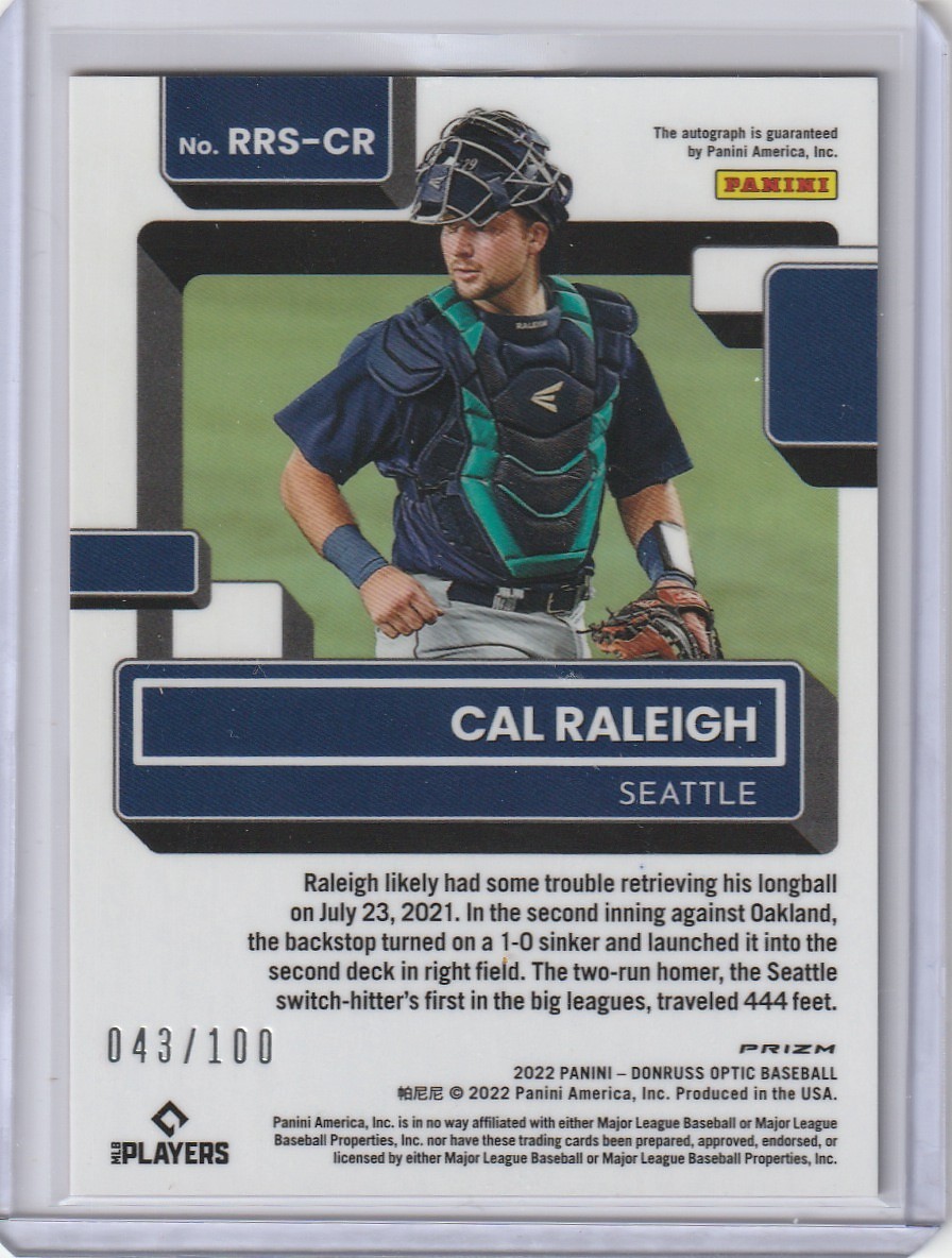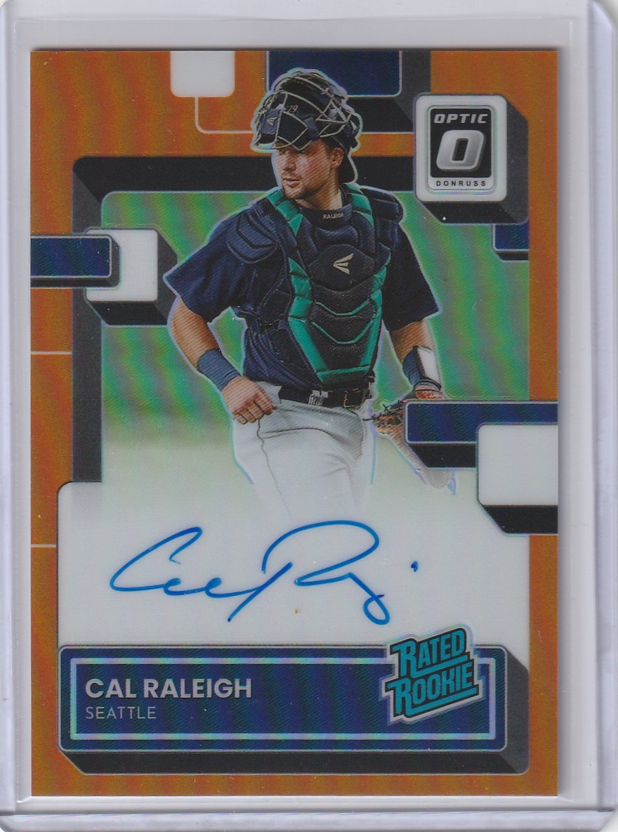 Cal Raleigh 2022 Donruss Optic Rated Rookies Signatures Orange #RRS-CR #’d 043/100