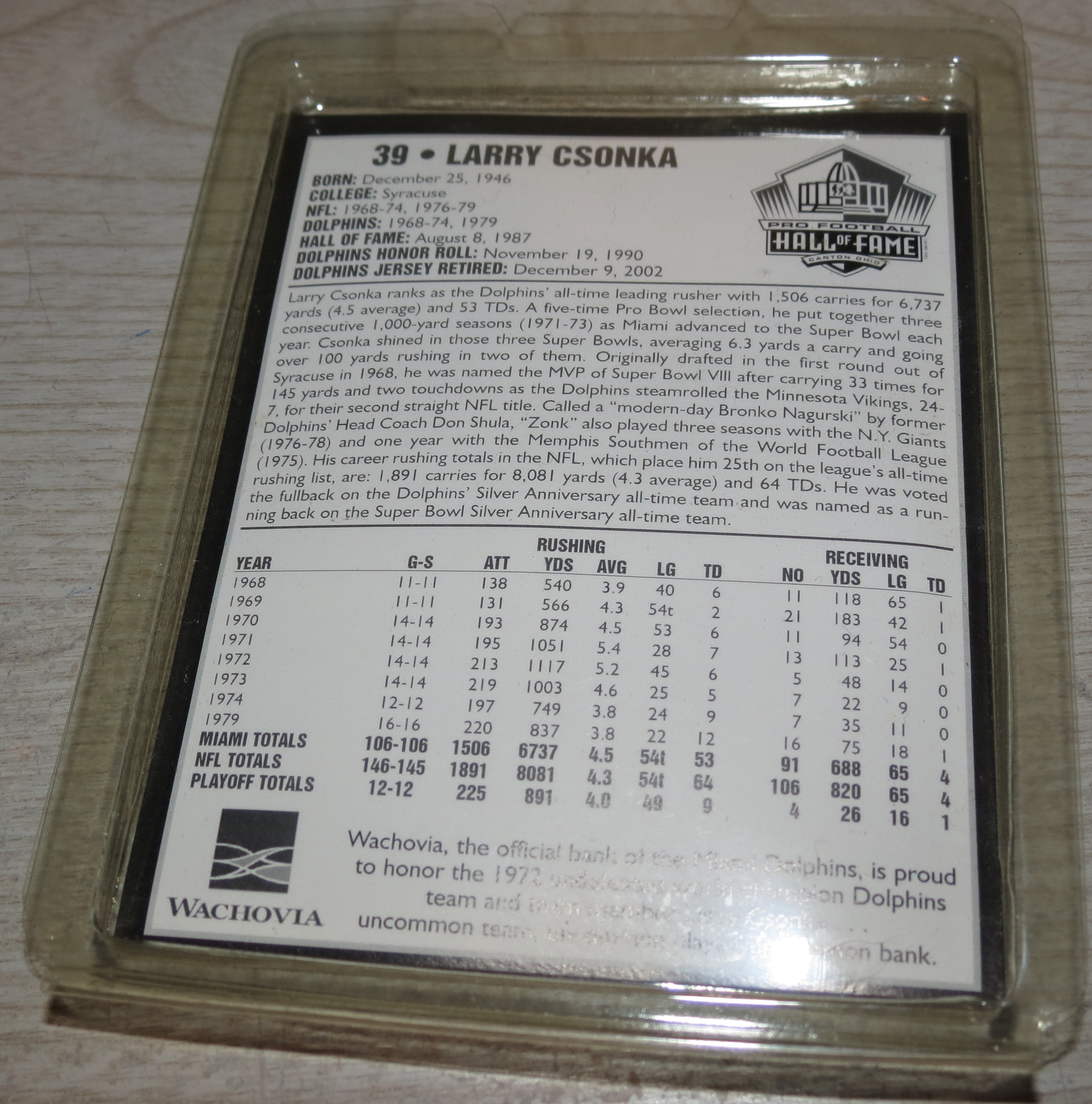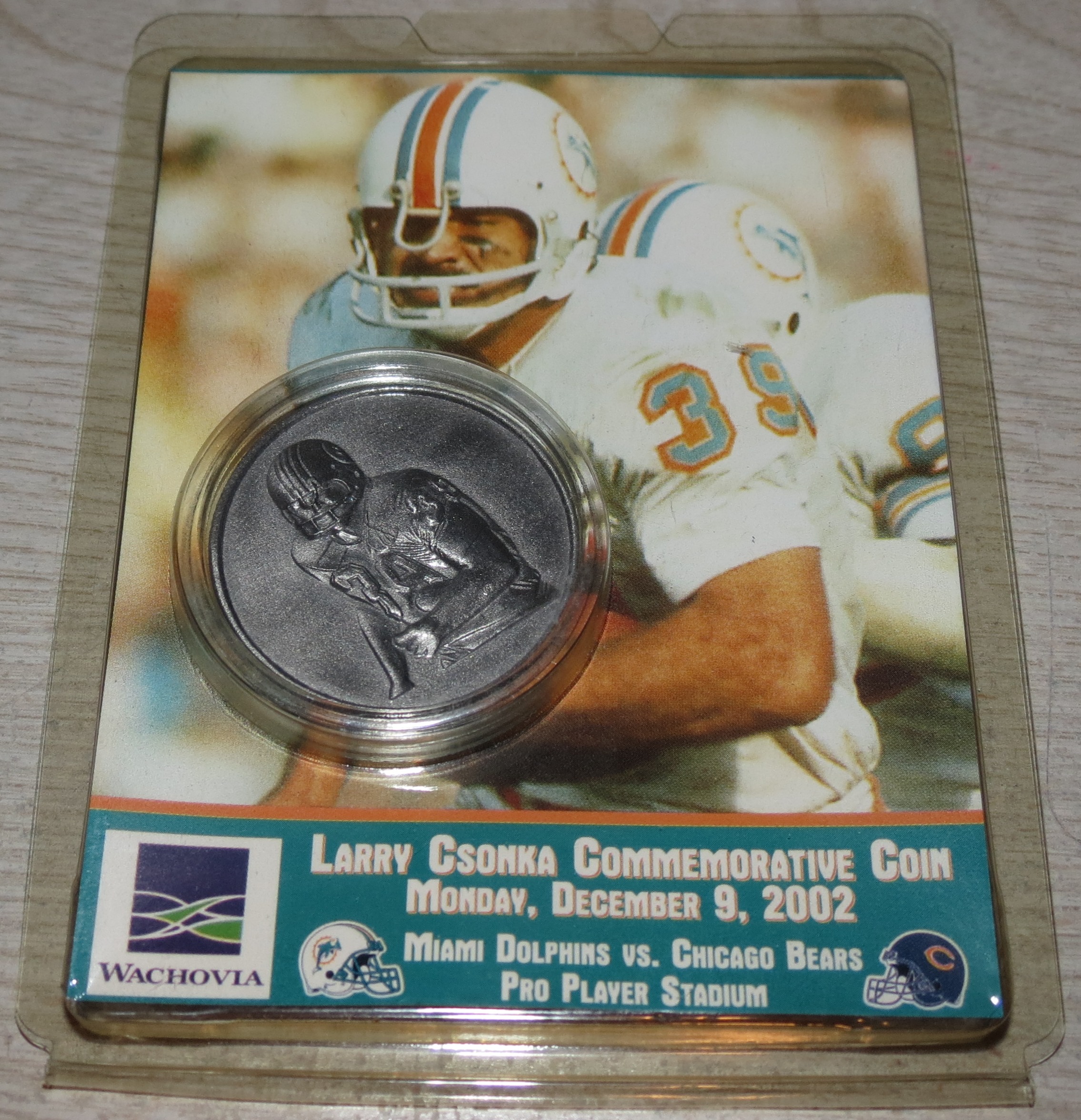 Larry Csonka Commemorative Coin: Dolphins vs Bears 12/9/02