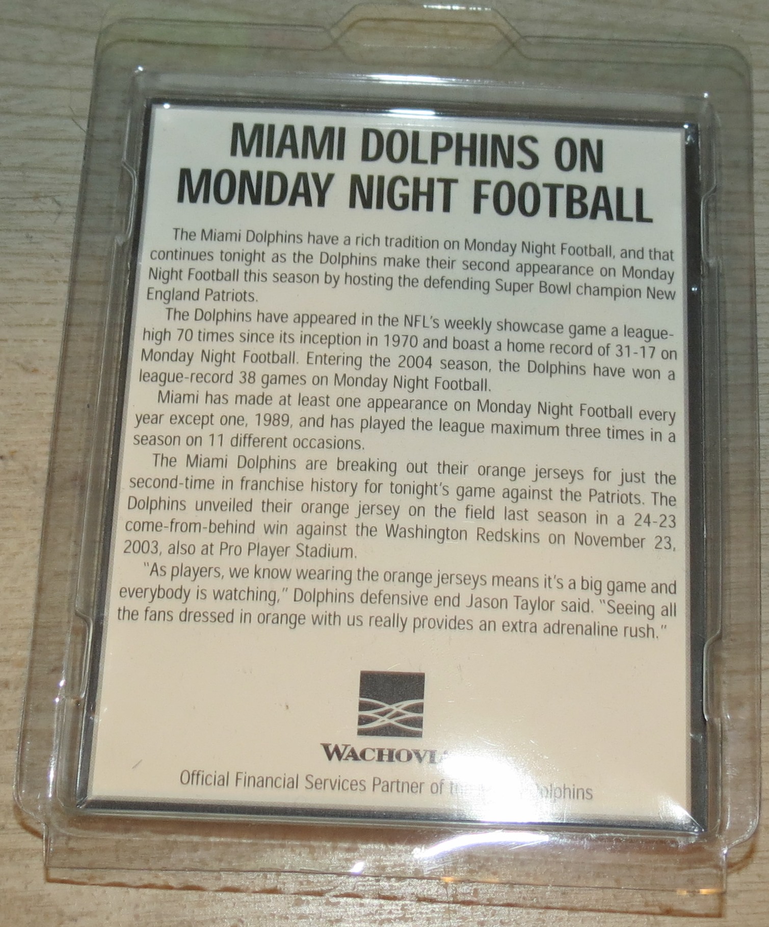 Miami Dolphins 2004 Orange Jersey MNF Commemorative Coin